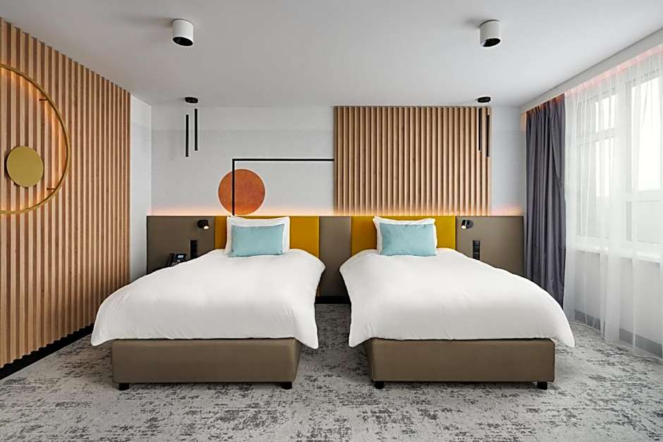 Featuring free toiletries, this twin room includes a private bathroom with a shower, a hairdryer and slippers. The air-conditioned twin room features a flat-screen TV with satellite channels, a tea and coffee maker, a wardrobe, a safe deposit box as well as city views. The unit has 2 beds.